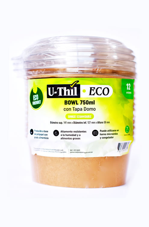 Bowl descartable de 750 ml ideal para ensaladas, guisos y sopas.